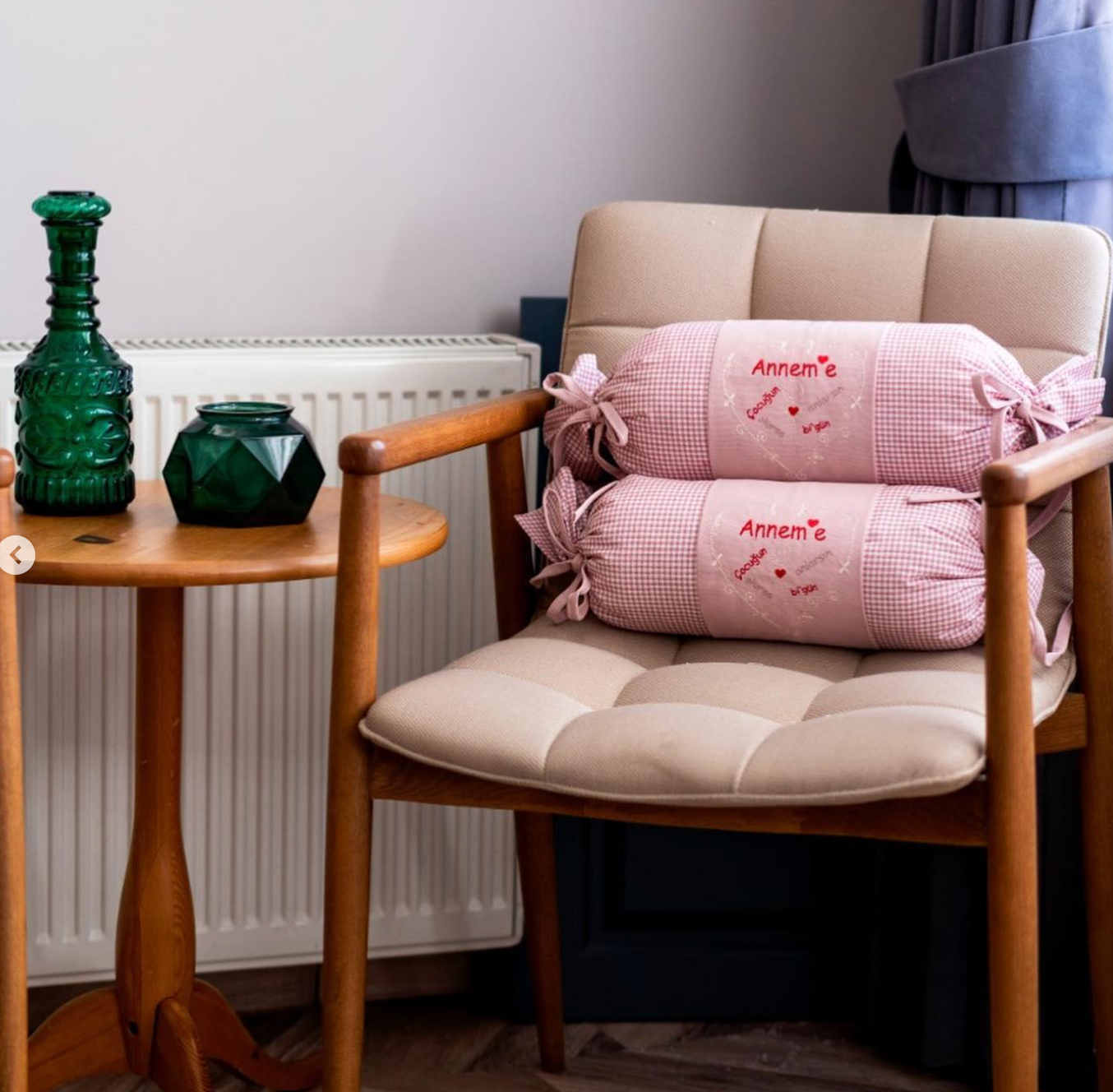 Annelere tatlı hediye, bonbon yastıklar. Üzerinde annelerin bizlere en çok kullandığı sözlerden "çocuğun olursa anlarsın bir gün" nakış işlemeli.